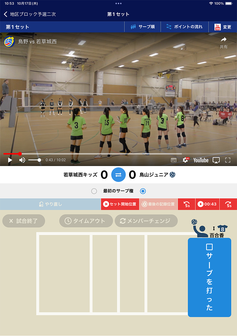 「動画で記録」の次のステップになります。対象のプレーのみを繰り返し再生しながらの記録になるので、落ち着いて正確に記録できます。