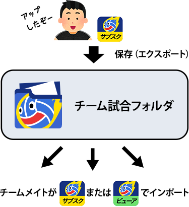 あとはチーム試合フォルダに保存(エクスポート)して、見たい人に自由にインポートしてもらいます。