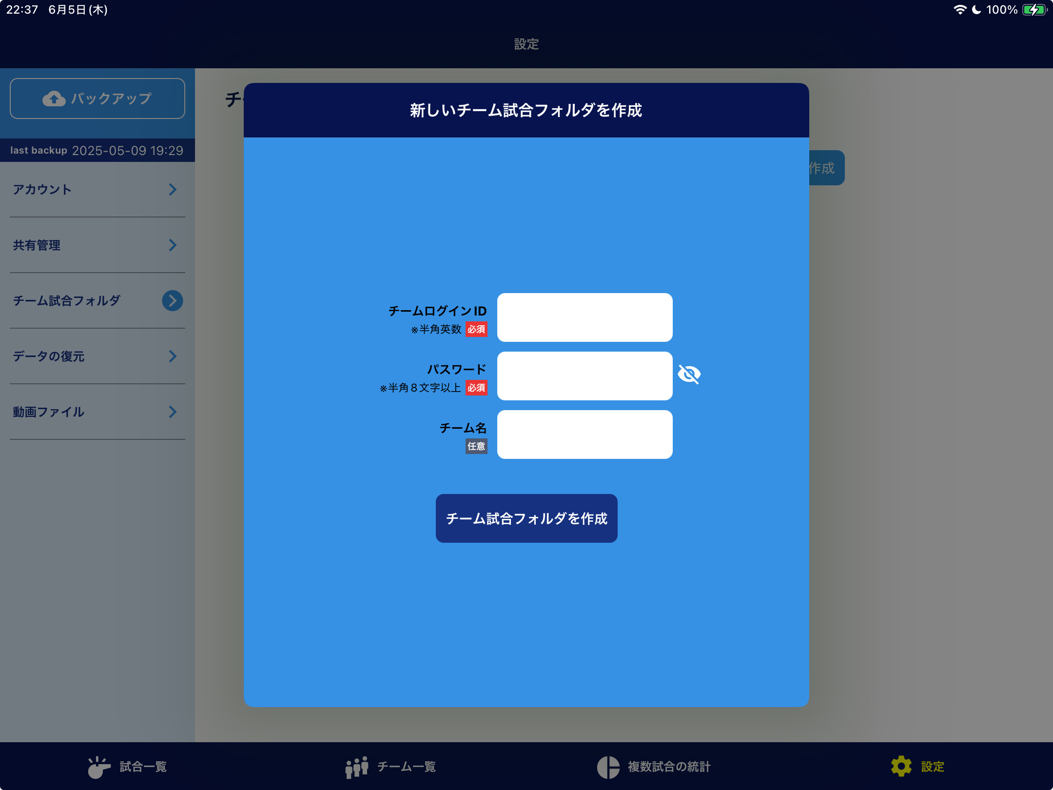 参加できるチーム試合フォルダは1つのみです。退会して別のチーム試合フォルダに参加することも可能です。