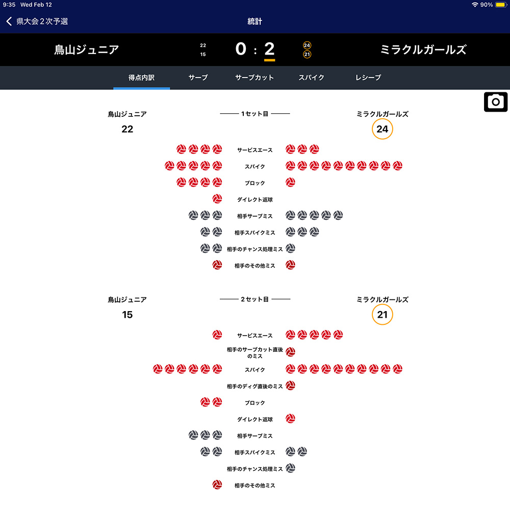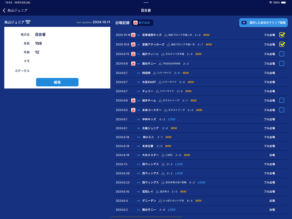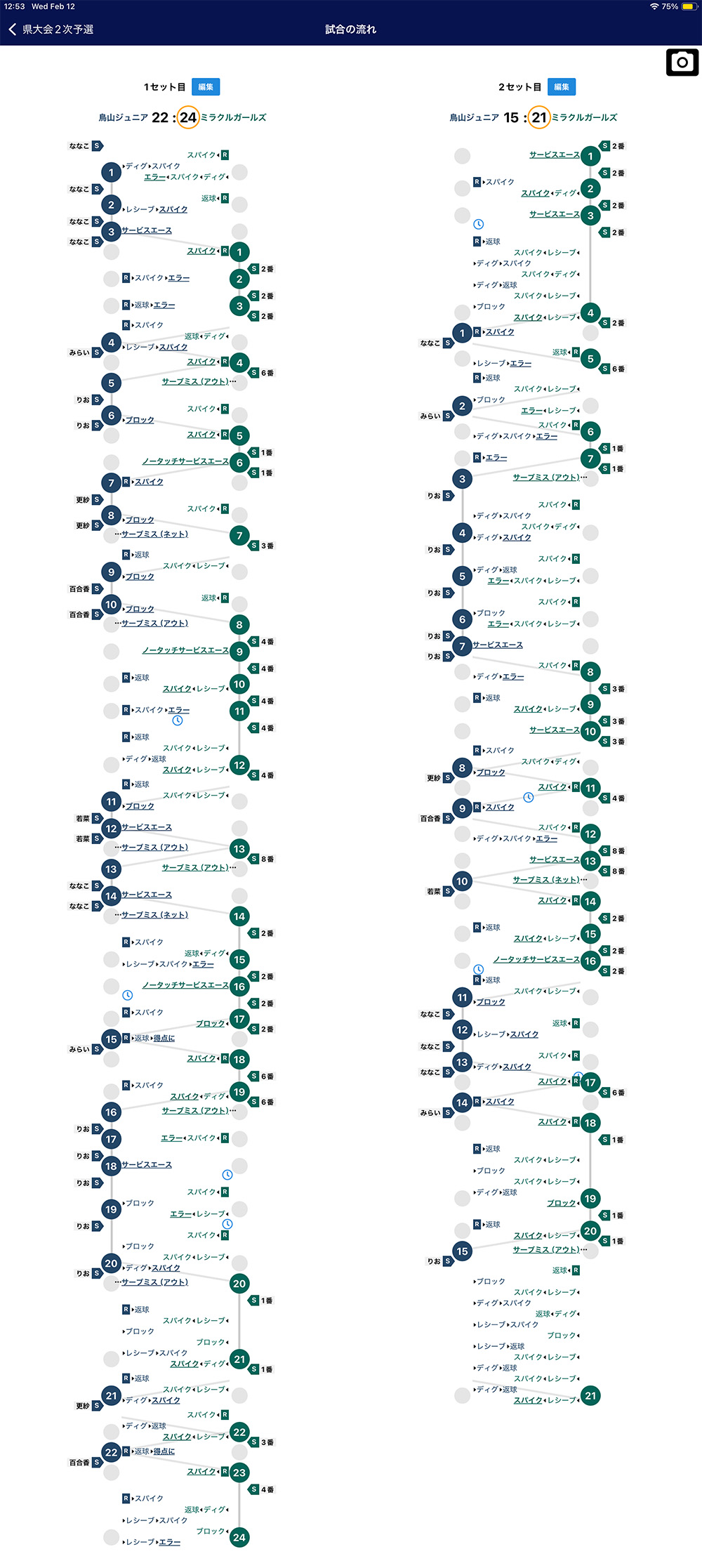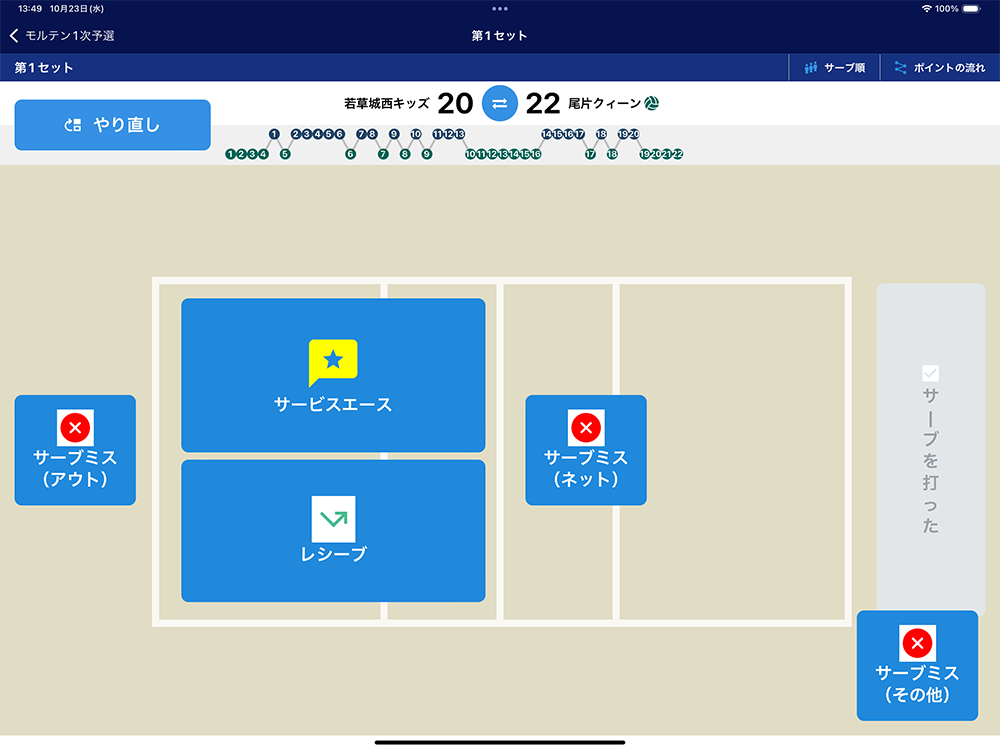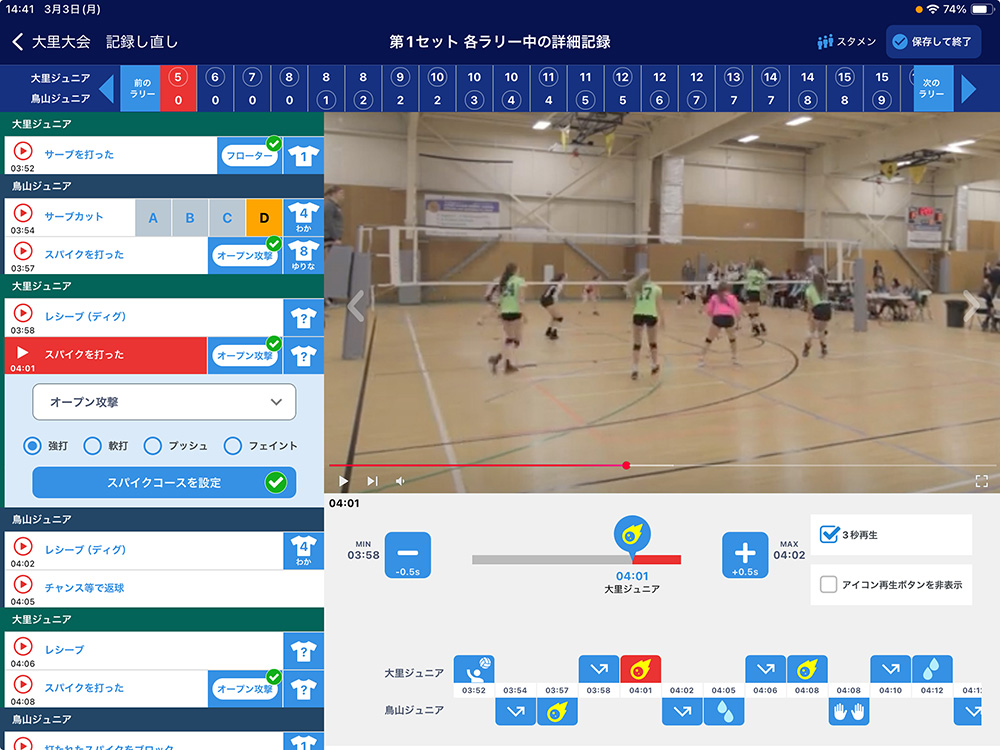 「動画で記録」の次のステップになります。対象のプレーのみを繰り返し再生しながらの記録になるので、落ち着いて正確に記録できます。