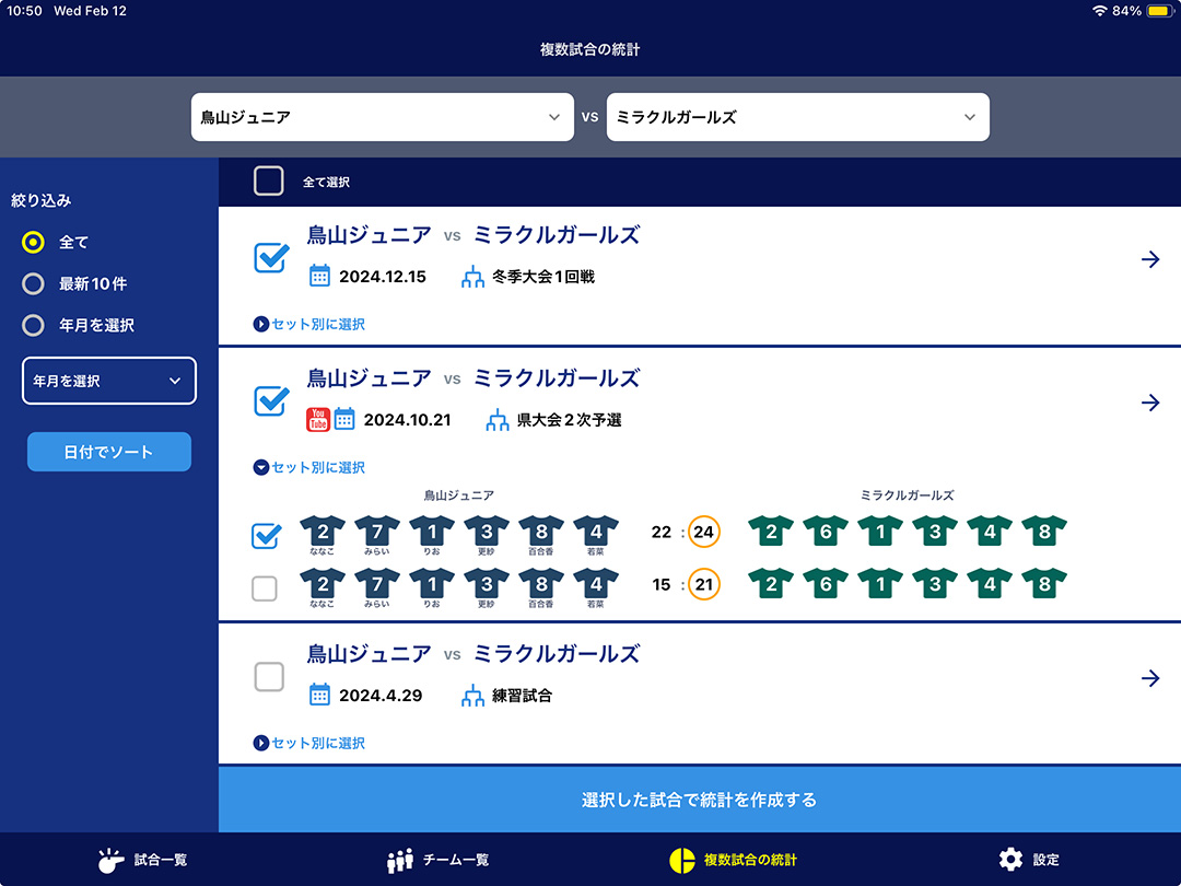 選手別に統計を作成する際に、複数のサブチームに所属していても同一の人物として扱うことができます。