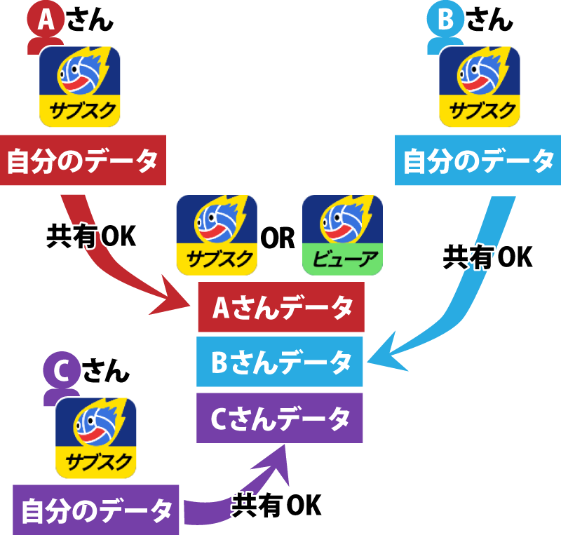 ※バレーアナリストJrビューアには、インポート機能のみ備わっており、自端末のデータを他者に共有する機能はありません。