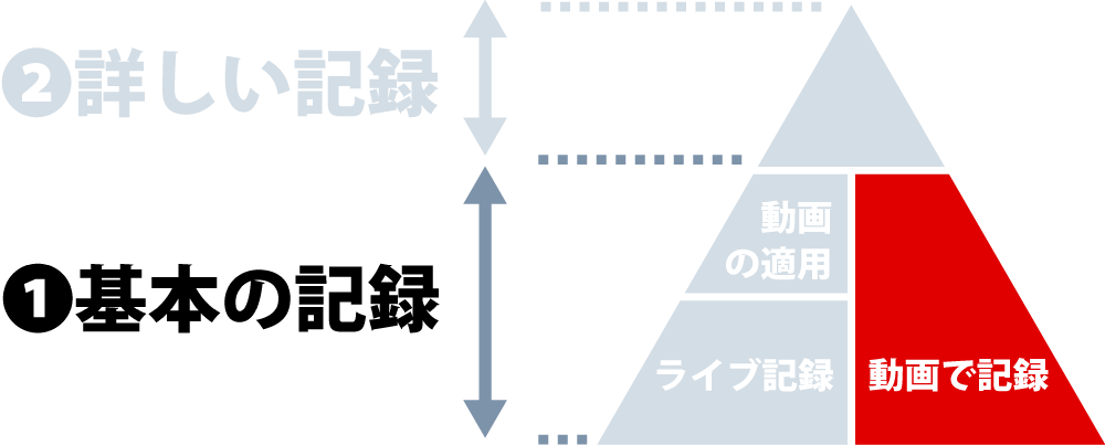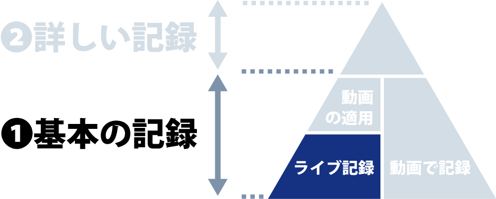 基本の記録は、「ライブ記録」と「動画で記録」の2パターンあります。
